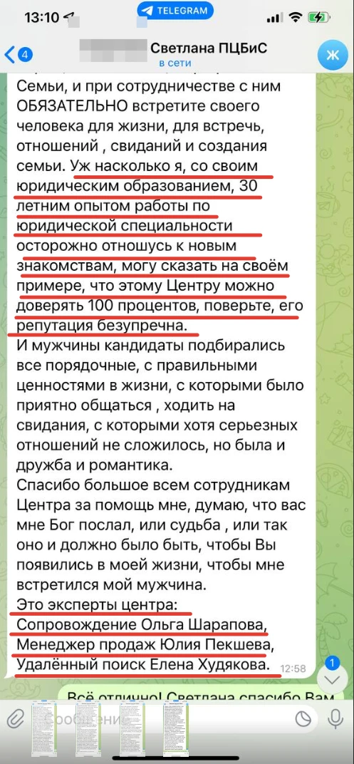 Мы не просто направляем Вам анкетные данные человека с фотографией, мы его презентуем, направляя Вам только проверенную информация, раскрывая потенциал кандидата, особенности, его сильные и яркие черты характера, и таким же филигранным способом мы находим точки соприкосновения с Вами и Вашими предпочтениями, чертами характера, интересами, взглядами!